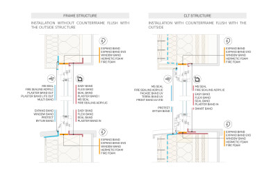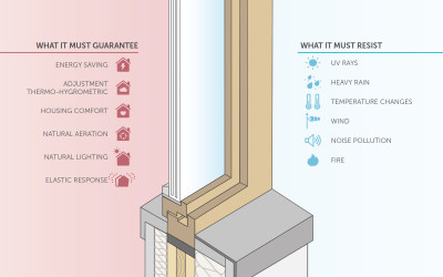 Unabhängig vom Material, aus dem ein Fenster gefertigt ist – sei es Holz, PVC oder Stahl –, aber auch bei Türen und Fenstertüren muss beim Einbau immer das Prinzip der Kontinuität der Wind- und Luftdichtheit sowie der Schalldämmung beachtet werden.
