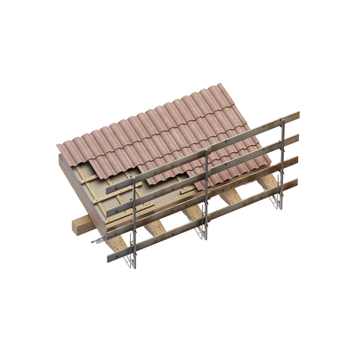 EDGE TEMP 2 ist das temporäre Geländer für die Traufseite der Eindeckung. Es besteht aus verzinktem Stahl und kann auf Dächern mit einer maximalen Neigung von 30° installiert werden.