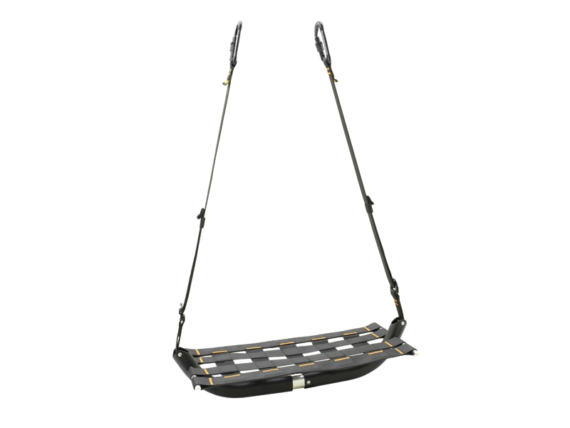 Die verstellbaren Riemen ermöglichen im Vergleich zu traditionellen Bosun-Stühlen optimierten Komfort, während die kompakte Konstruktion für den platzsparenden Transport zusammengerollt werden kann.