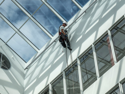 Arbeiten in der Höhe – was ist damit gemeint? Ein Absturzrisiko aus einer Höhe von über 2 m definiert die Arbeit in der Höhe, bei der immer ein Anschlagen erforderlich wird. Bei einigen Arten der Instandhaltung, speziell bei Fassaden von großen Gebäuden, werden oftmals sehr sperrige Lösungen wie BMU verwendet, die auch als Fassadenbefahranlagen bekannt sind. Für deren Installation wird ausreichend Platz benötigt, um eine Maschine mit großem mechanischem Ausleger aufnehmen zu können, dessen Gewicht und Abmessungen bereits bei der Planung des Gebäudes berücksichtigt werden müssen. H-RAIL hingegen kann aufgrund der einfachen Anwendung und Leichtigkeit jederzeit nachträglich installiert werden und bietet besonders hohe Performance.