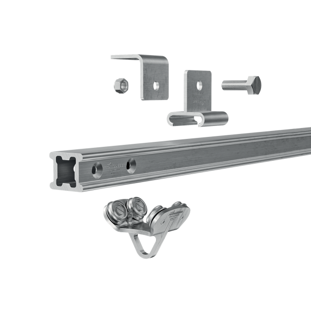 Das System H-RAIL wurde eigens für den Einsatz in Verbindung mit einem speziellen Seilgleiter mit vier Rollen entwickelt und stellt somit die ideale Wahl für ein Sicherungssystem mit fester Führung auf Schienen dar.