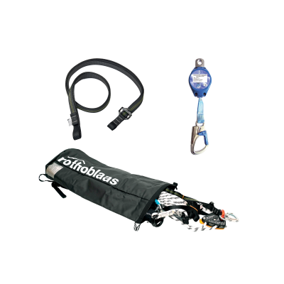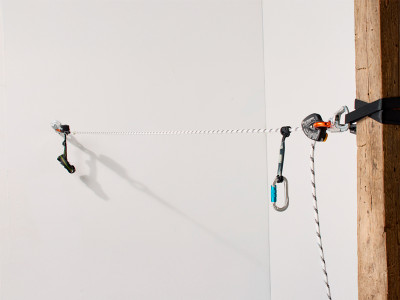 HOLD SYSTEM ist die temporäre Anschlageinrichtung, die während der Bauphase oder in anderen Sonderfällen eingesetzt werden kann. Ideal zur Sicherung von zwei Personen, mit einer maximalen Spannweite von 12 m. Das System kann von nur einem Benutzer über das Prusik-Knoten-System und die selbstsichernde Vorrichtung einfach und schnell gespannt werden. Komplettes System aus Karabinern und Gurtbändern für die Befestigung.