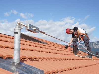 Die zylindrische Stütze TOWER mit ihren geringen Abmessungen gewährleistet eine angenehme Optik in jedem Kontext und minimiert die visuelle Beeinträchtigung. Das Seilsystem TOWER hält sowohl den Belastungen in der Ebene (360°) als auch den Auszugskräften stand und ist für die Installation an flachen und geneigten Dächern sowie für die Fertigung von Überkopf-Seilsystemen geeignet.