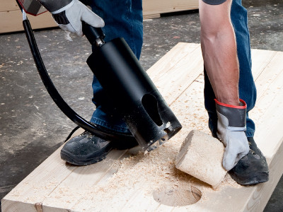Die Lochsäge LB ist für tiefe Bohrungen mit einer Schnitttiefe von 300 mm | 12 Zoll ausgelegt. Sie eignet sich auch für stärkere Holzelemente und Mehrschichtplatten.
