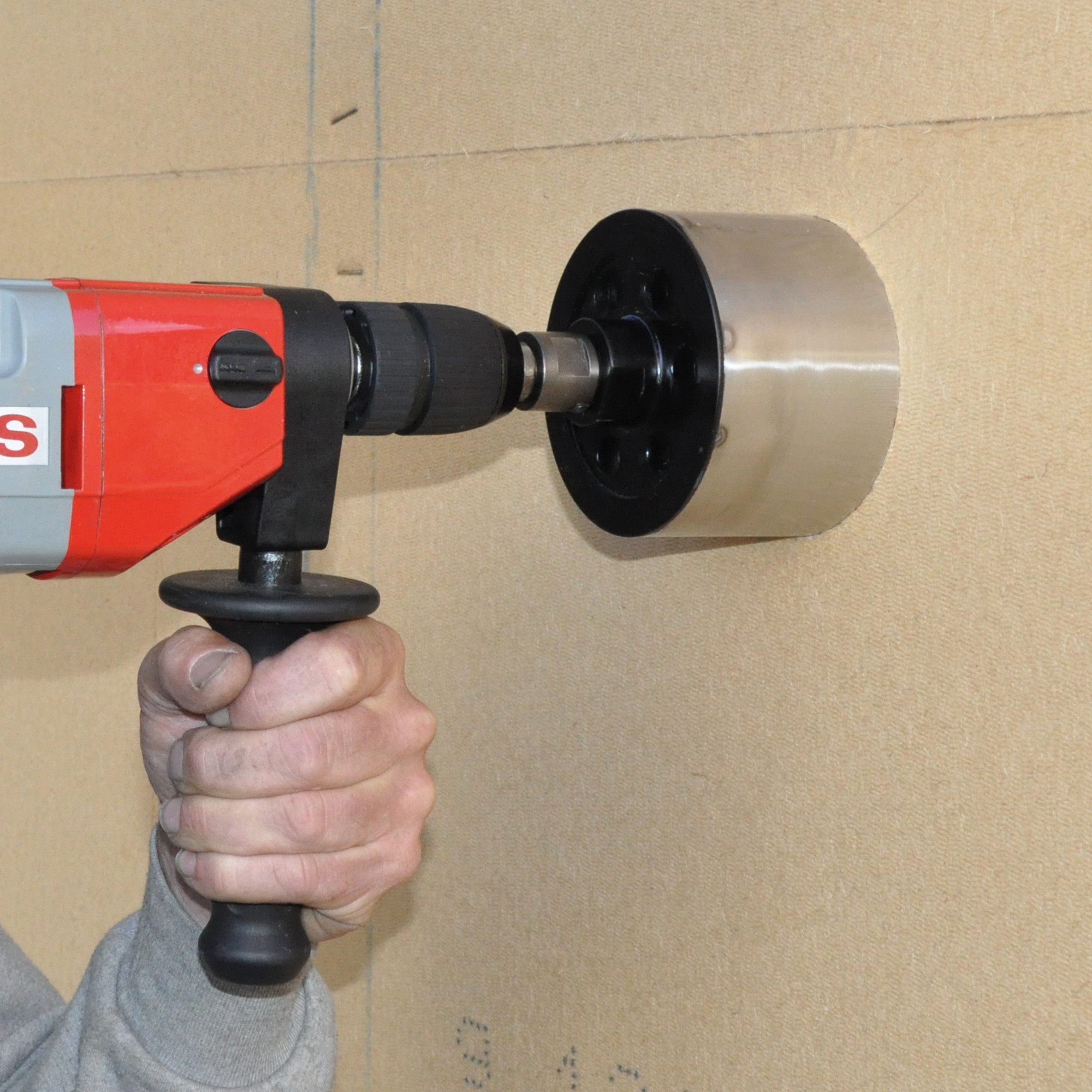 Sehr scharfe und extrem dünne Schneide für eine schnelle, exakte und staubarme Bohrung von Einblasöffnungen in Faserdämmstoffe.