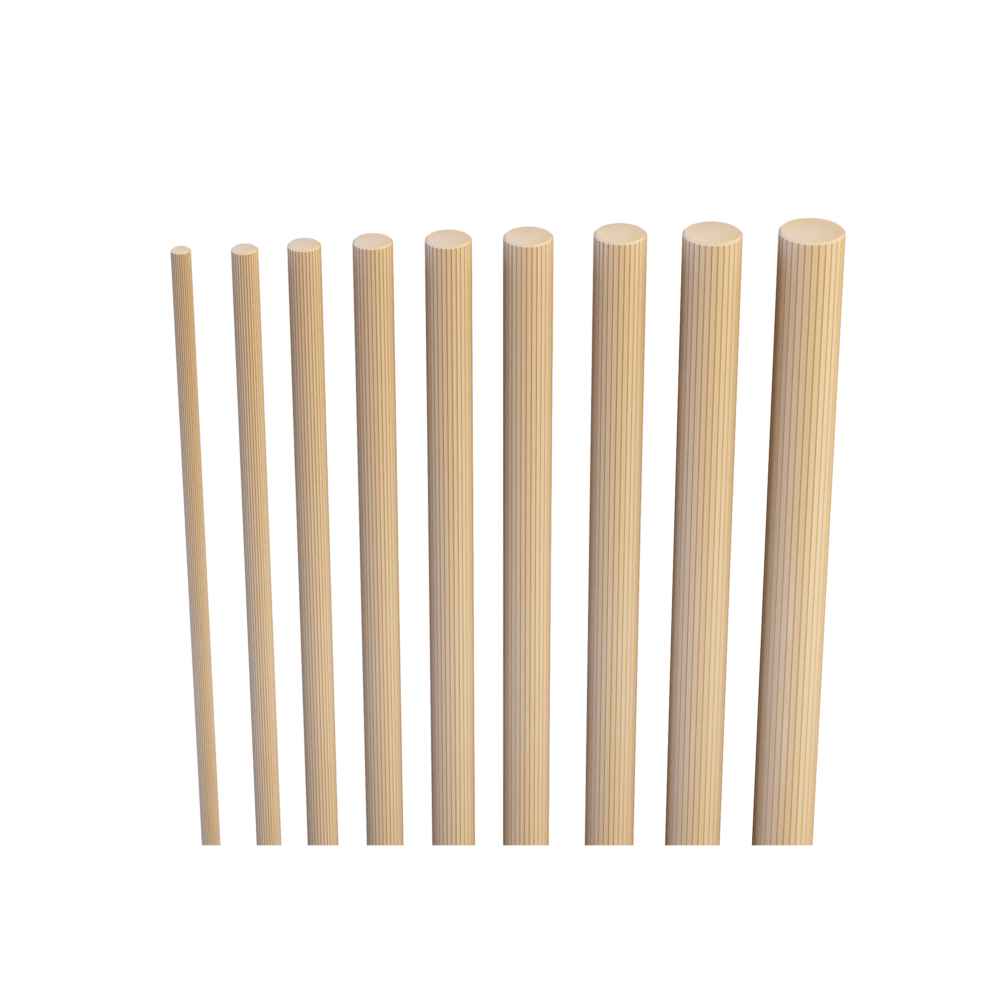 Die Riffeldübel RIF stellen eine Verbindung zwischen zwei Holzkomponenten her und sind aus hochwertigem Buchenholz gefertigt. Sie sind an beiden Enden abgeschrägt.