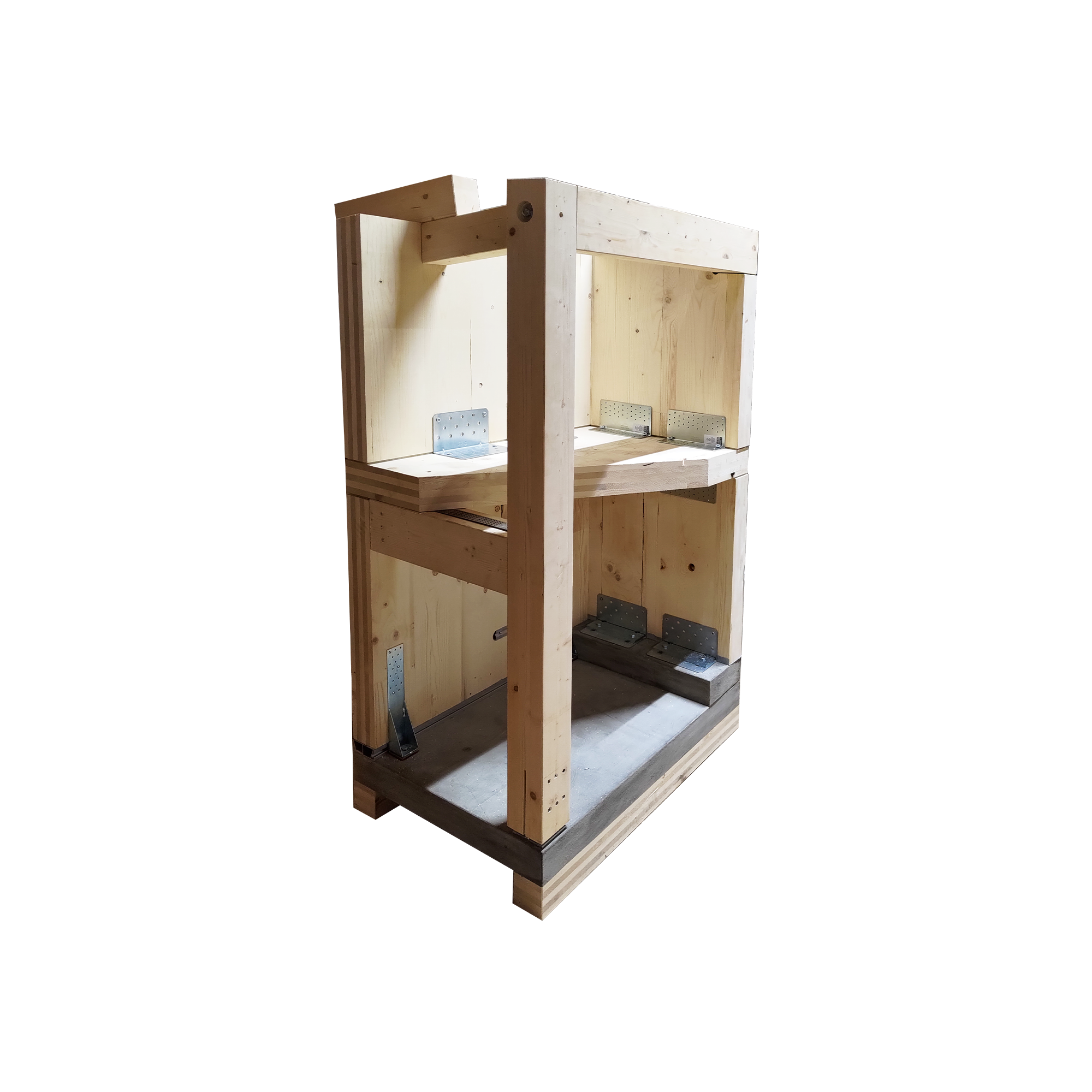 Das System umfasst vorgefertigte Paneele, Brettschichtholzbalken sowie eine Auswahl an strukturellen Verbindungselementen, die in der CLT-Konstruktion verwendet werden, sodass die Teilnehmer die wichtigsten Montagephasen einer Holzingenieurstruktur simulieren können.