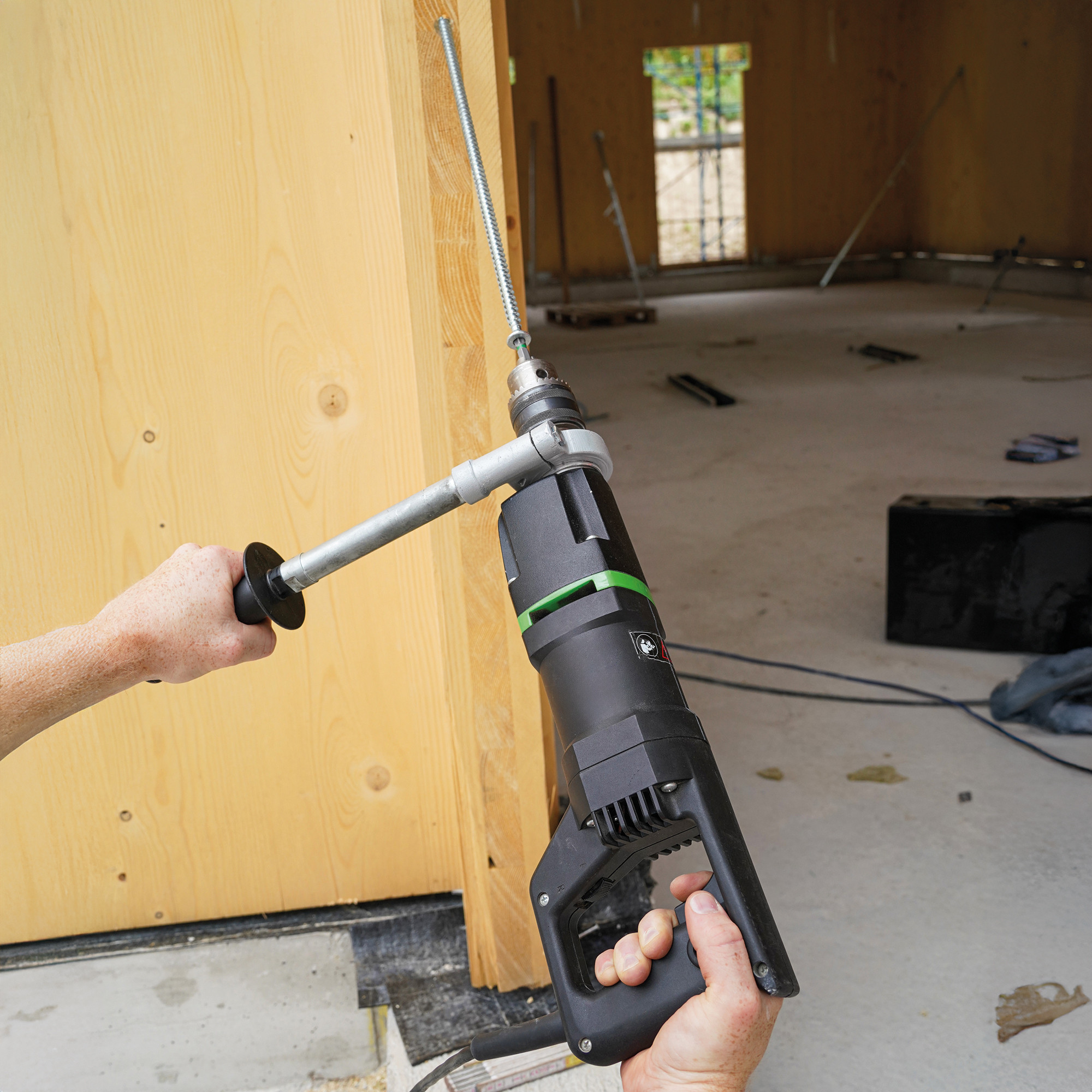 Die Handbohrmaschine EHB 16 bietet Leistung, lange Lebensdauer und Eigenschaften, die für anspruchsvollste Anwendungen im Holzbau erforderlich sind. Der Motor liefert das richtige Drehmoment für Schrauben mit großem Durchmesser, wie HBS, TBS, VGZ und VGS.