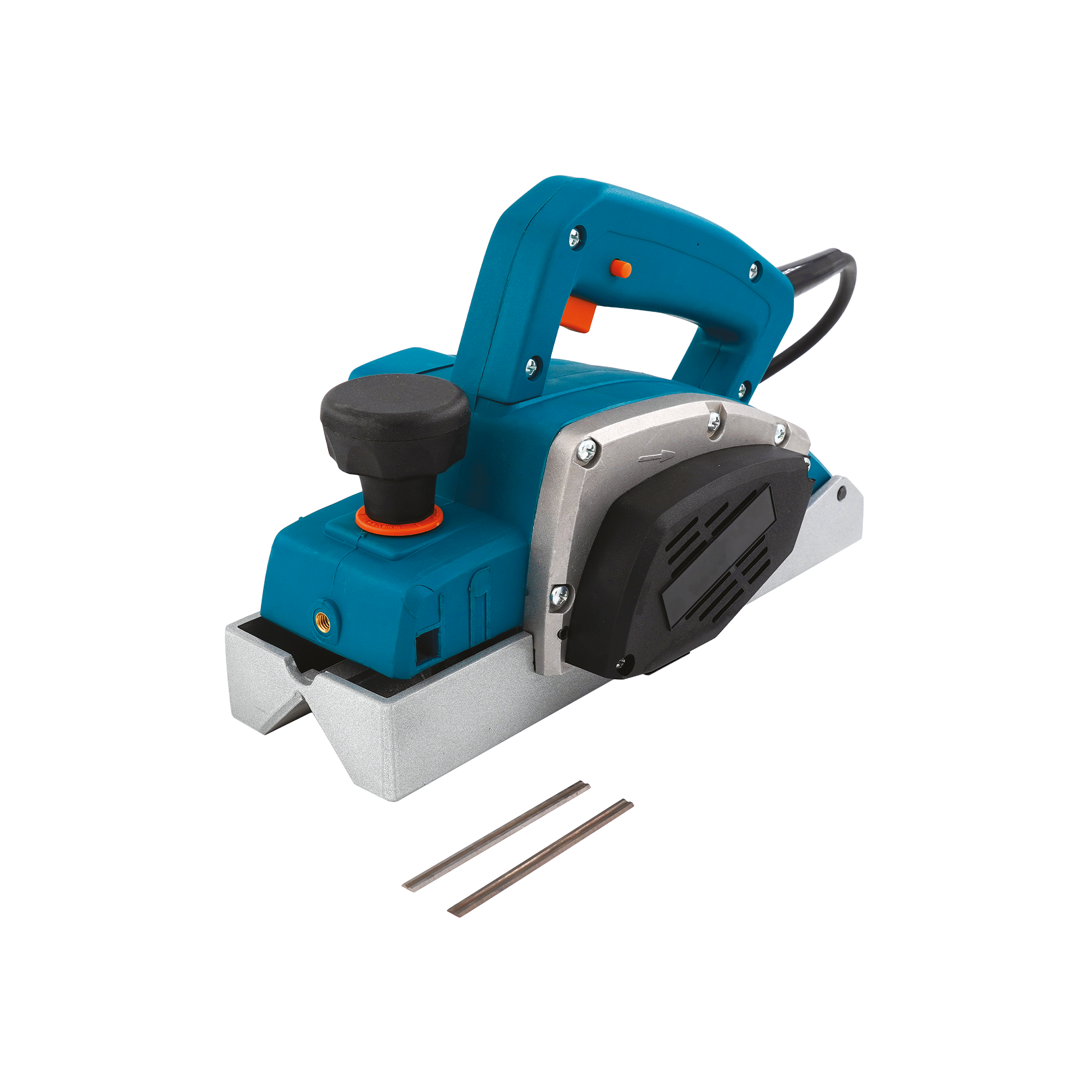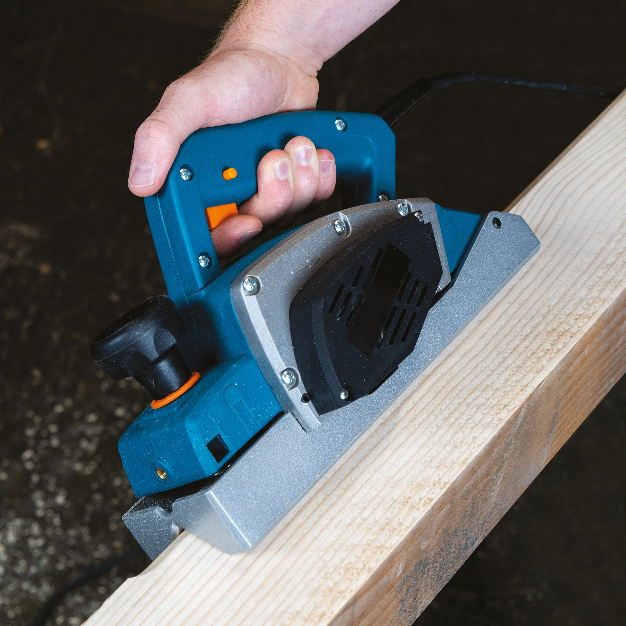 Mit dem Drehknopf lässt sich die Hobeltiefe exakt einstellen. Die Auflagetische garantieren ein genaues Arbeiten.