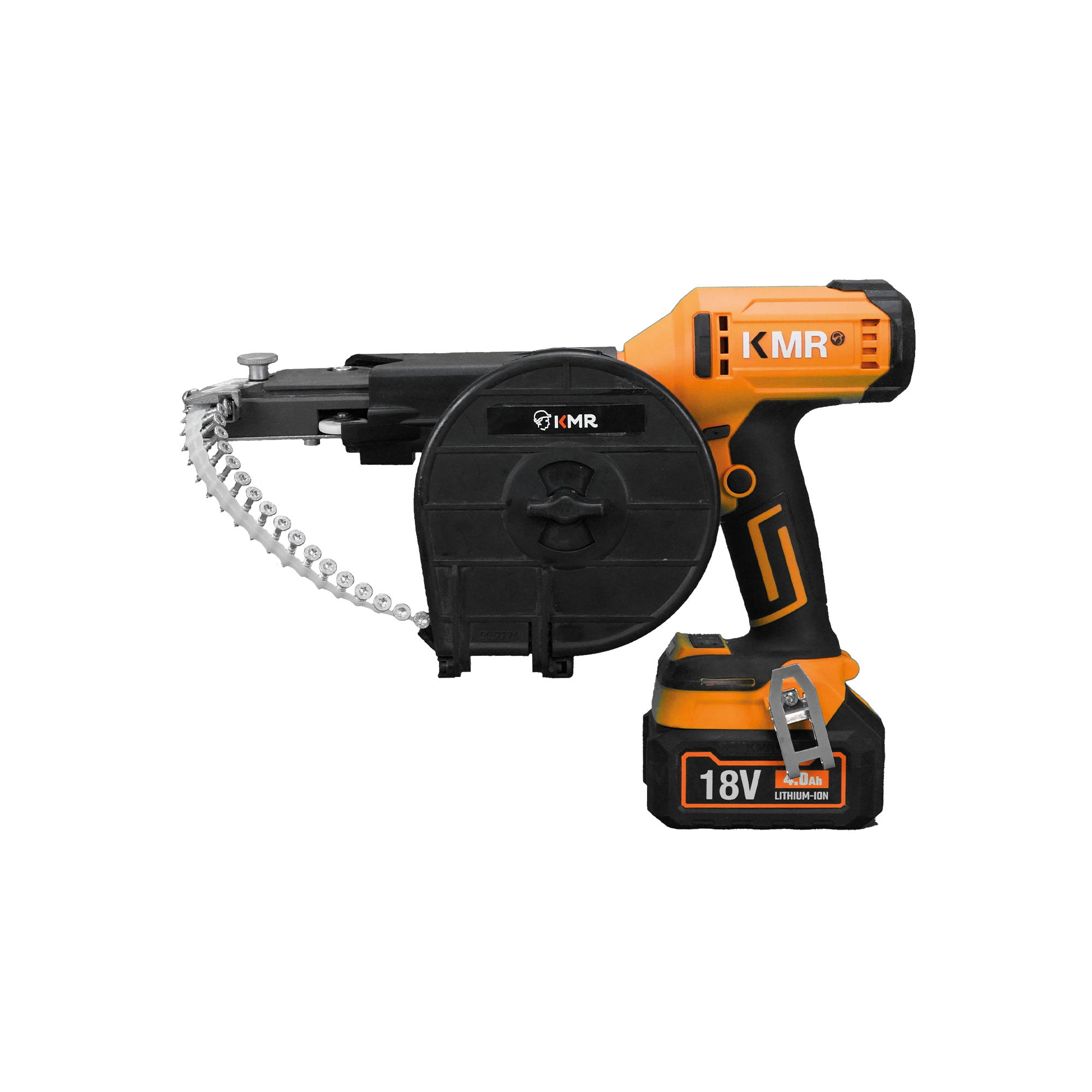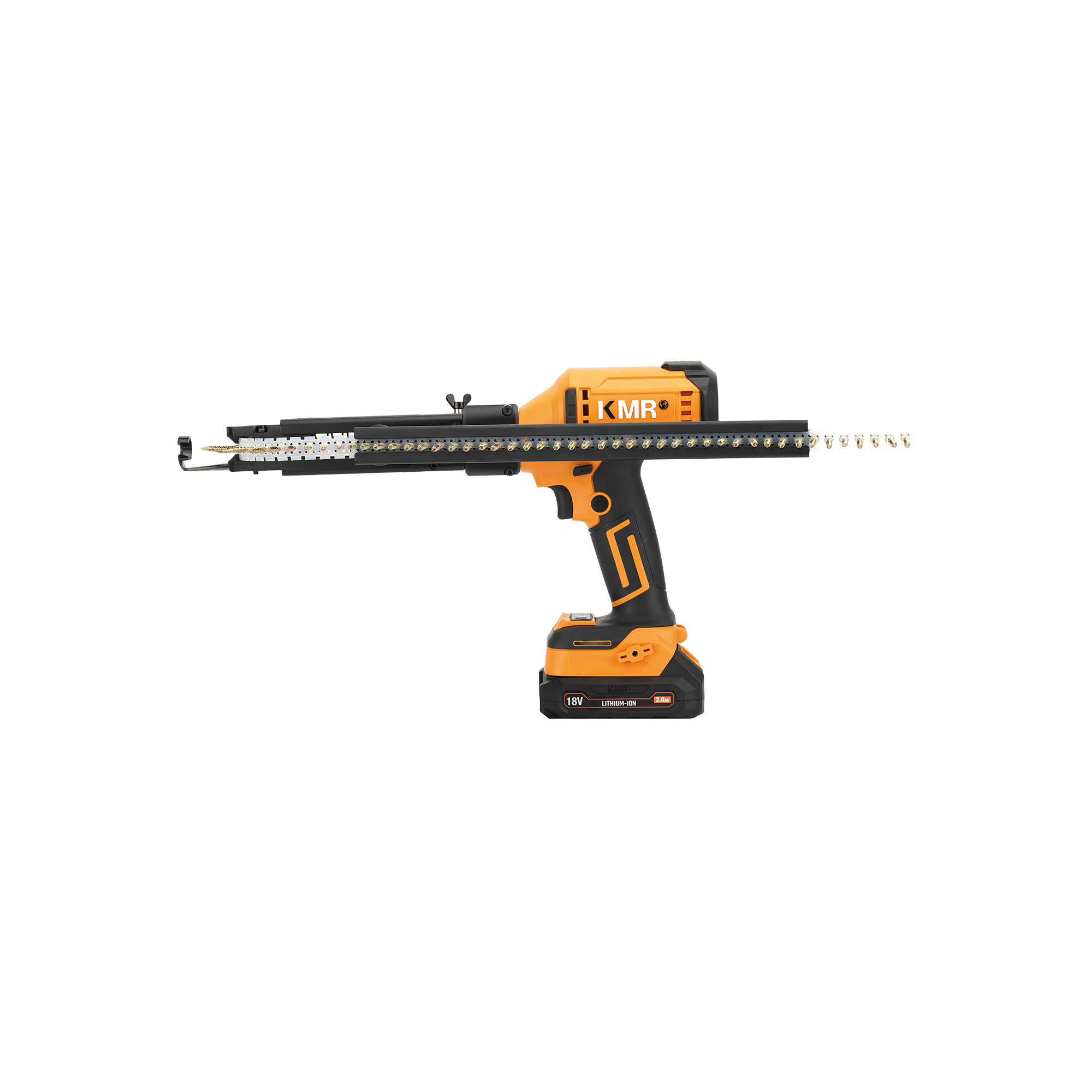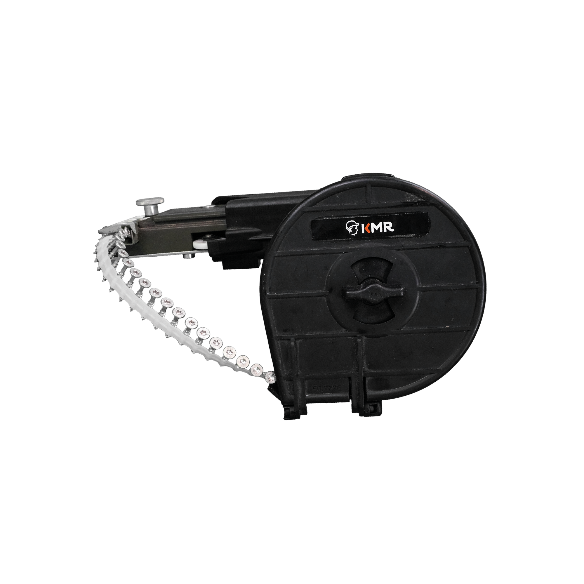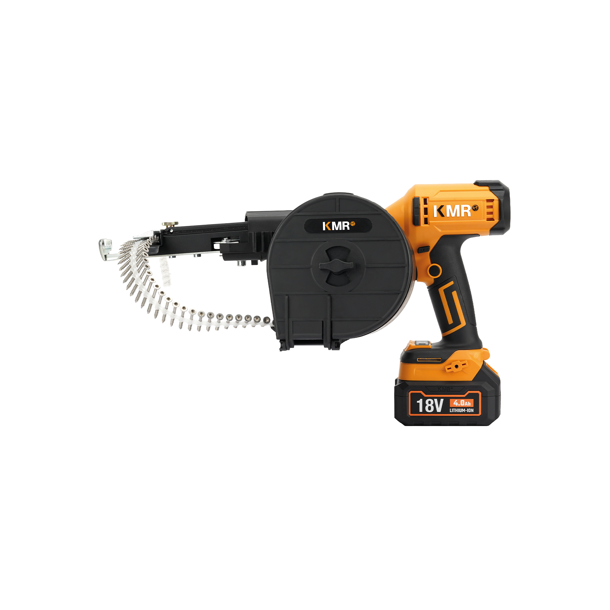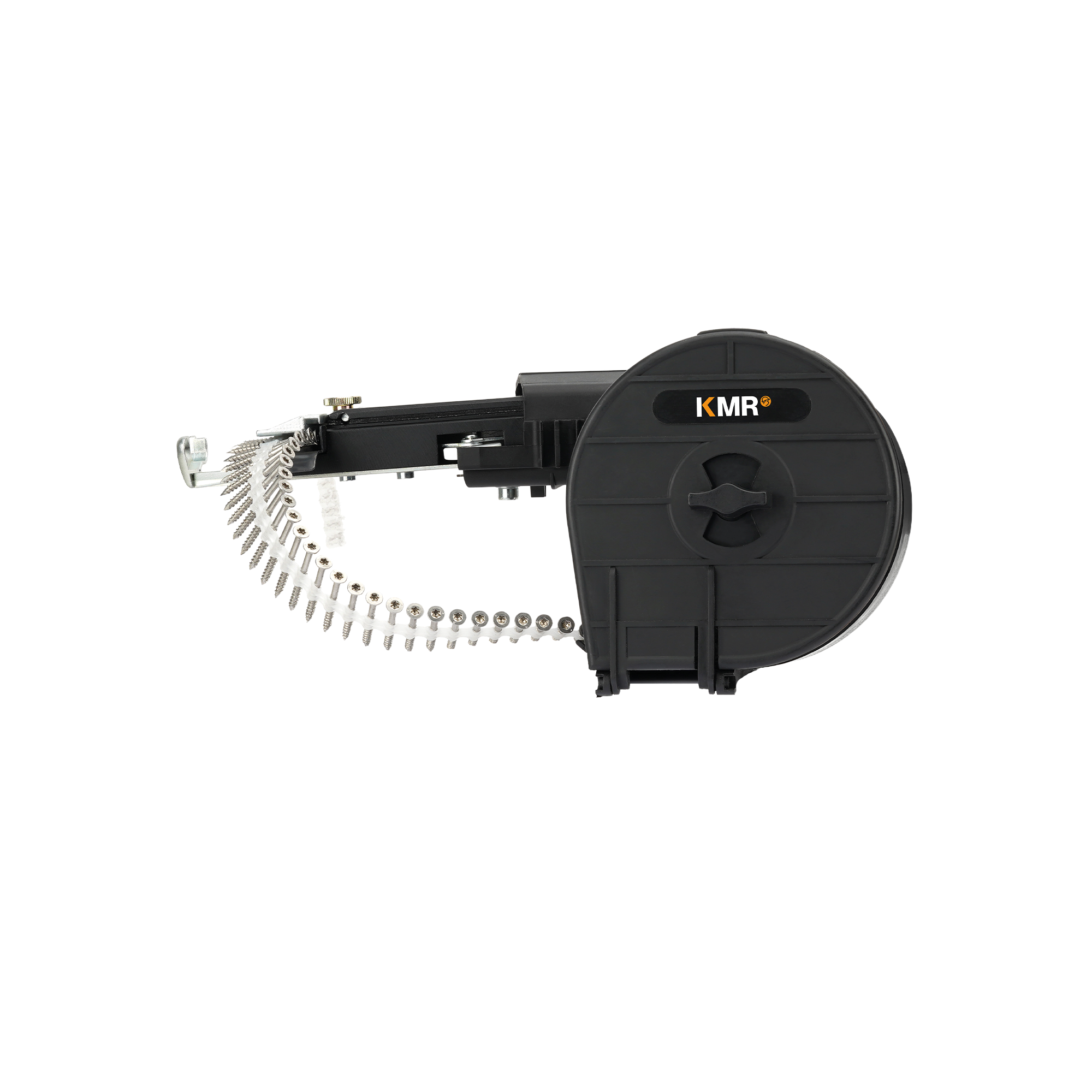 Ein Akkuschrauber, der mit drei verschiedenen automatischen Magazinaufsätzen arbeitet. So entsteht ein austauschbare System für eine schnellere und effizientere Montage der Schrauben.