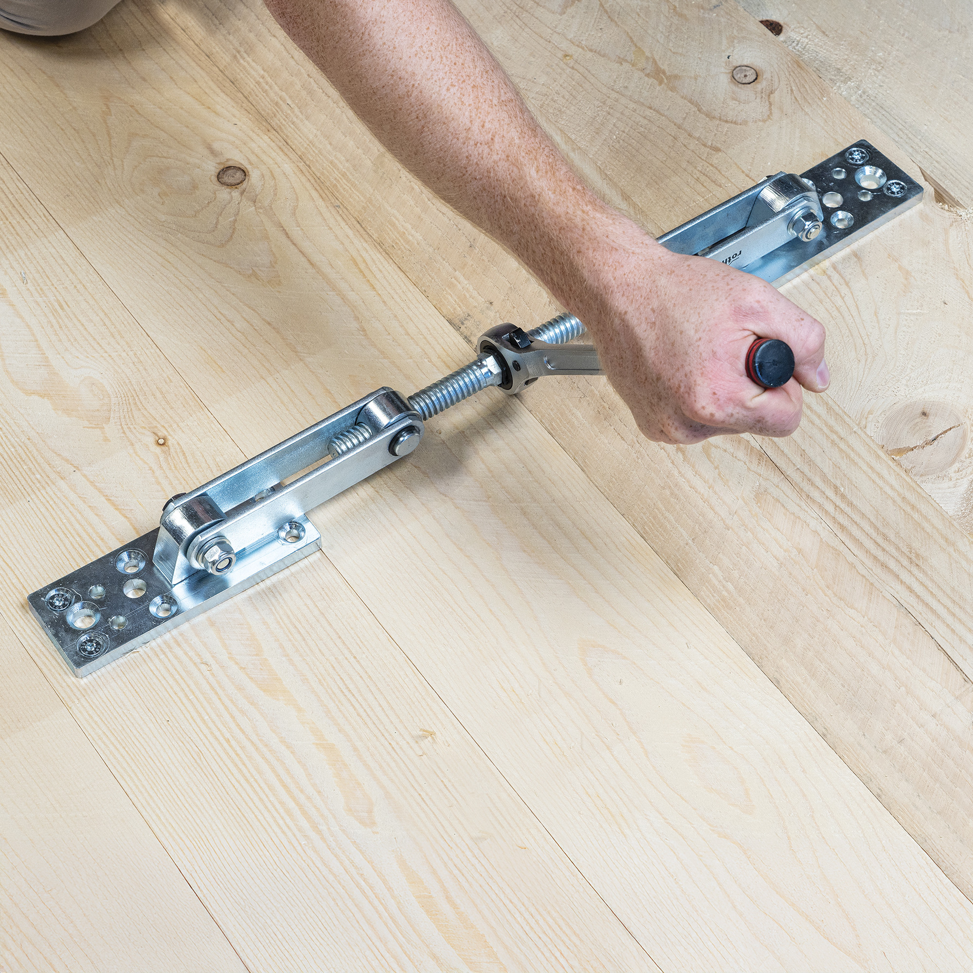 GEKO ist der Plattenzug zum präzisen Zusammenfügen von Massivholzwänden, Brettstapeldecken, BSH-Elementen und vielem mehr. Aufgrund der um 360° drehbaren Platten kann er auch an schwer zugänglichen Stellen, wie Dachschrägen und Ecken, eingesetzt werden.