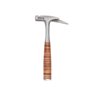 - Aus einem Stück geschmiedet mit Griff aus unbehandeltem Kernleder.