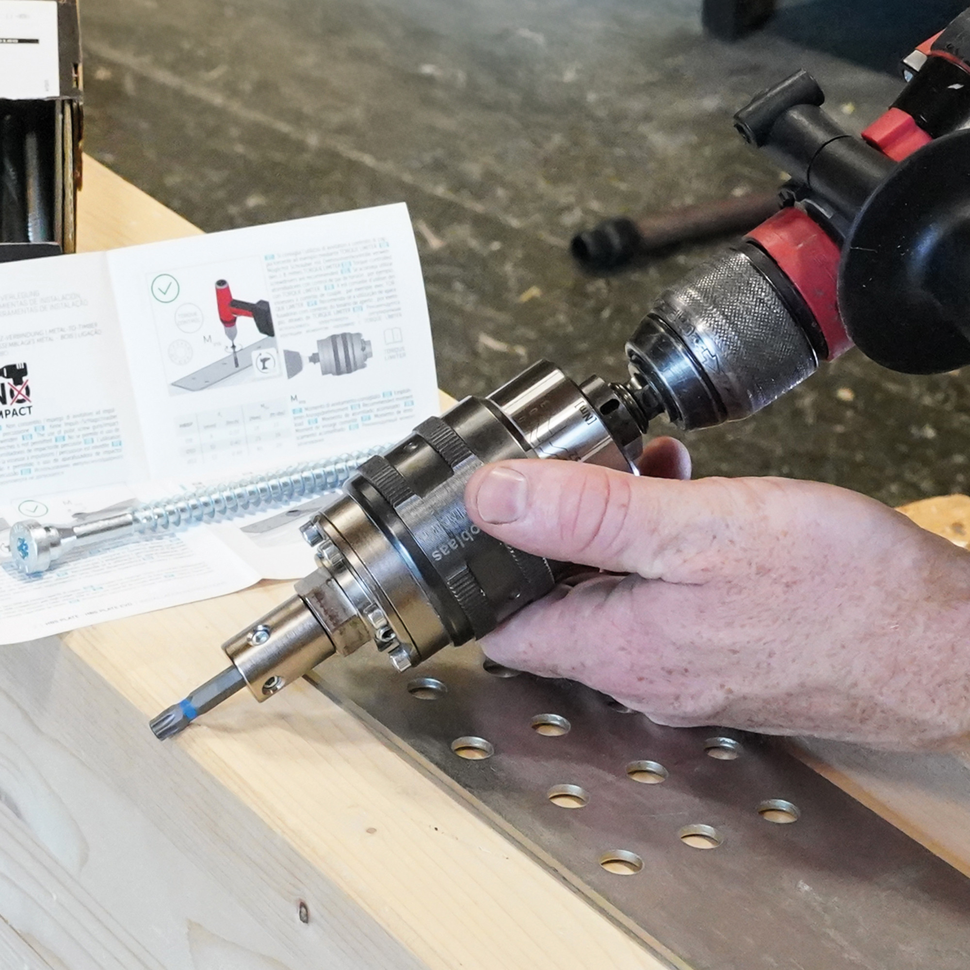 Der TORQUE LIMITER ist besonders geeignet bei Metall-Holz-Verbindungen und gewährleistet eine kontrollierte Verschraubung, ohne das maximale Drehmoment der Befestigungselemente zu überschreiten.