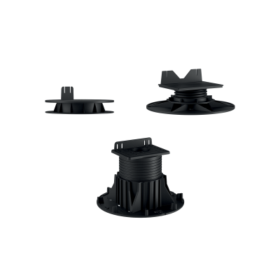 Der Stellfuß für Terrassen SUPPORT ist in drei Ausführungen für den Ausgleich unterschiedlicher Höhen erhältlich. Er ist höhenverstellbar und ermögliche die Nivellierung der Unterkonstruktion von Terrassen im Außenbereich.