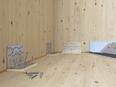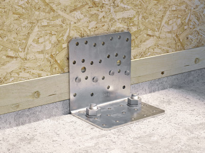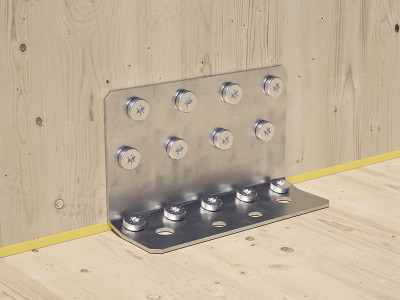 Die von ETA-22/0089 zertifizierten Festigkeitswerte gegen Beanspruchungen in alle Richtungen machen sie zu einer Komplettlösung für die Befestigung von BSP- oder Timber-Frame-Wänden. Dank der geringen Abmessungen sind sie auch bei nichttragenden Anwendungen oder kleinen Befestigungsanforderungen eine ideale Lösung. Der gleiche Winkelverbinder kann in der Holz-Holz- bzw. Holz-Beton-Konfiguration angewendet werden. Die zusätzliche Unterlegscheibe bietet auf Beton eine überraschende Festigkeit.