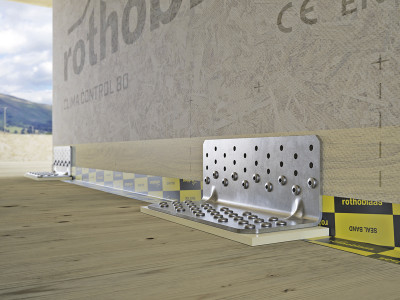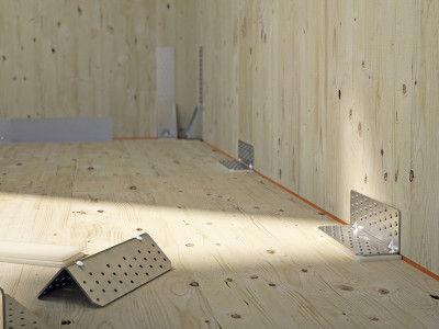 Dank der vertieften Position der Löcher am vertikalen Schenkel bietet der Winkelverbinder TITAN F auch bei Randbalken geringer Höhe (bis 38 mm) hervorragende Scherfestigkeitswerte zu allen Bedingungen. R2,k bis zu 40 kN sowohl auf Holz als auch auf Beton. In Kombination mit XYLOFON PLATE ermöglicht dieser Winkelverbinder (bzw. Winkelbügel) eine wirksame Begrenzung von Schallbrücken und reduziert den Trittschall auf Holzböden bei optimalem Preis-Leistungs-Verhältnis.