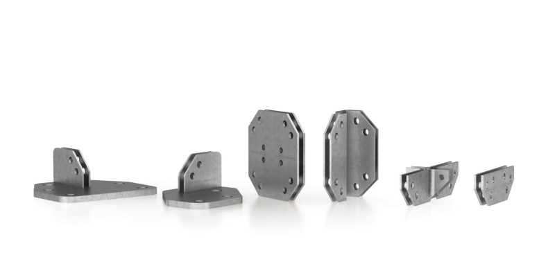 Das Sortiment erfüllt alle Baustellenanforderungen, vom Bodenanschluss über Verbindungen zwischen Wänden auf unterschiedlichen Ebenen und mit verschiedenen Stärken bis hin zur Befestigung der Wände auf Dachhöhe.