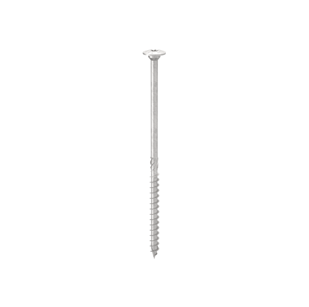 Zugelassen für die Verwendung bei statisch tragenden Verbindungen, bei denen die Schraube in jeder Richtung zur Faser beansprucht wird (α = 0° - 90°). Das asymmetrische „Schirm“-Gewinde gewährleistet einen hervorragenden Einzug in das Holz. HBS EVO zeichnet sich durch hervorragende Festigkeit aus: Die durchgeführten Tests ergaben eine ausgezeichnete Bruchfestigkeit, ein hohes Fließmoment des Stahls (fy,k = 1000 N/mm2) und die sehr hohe Torsionsfestigkeit ftor,k für sicheres Einschrauben.