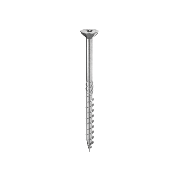 Austenitischer Edelstahl A2. Hohe Korrosionsbeständigkeit. Geeignet für den Außenbereich bis zu 1 km Abstand zum Meer in Klasse C4 auf den meisten säurehaltigen Hölzern der Klasse T4.
